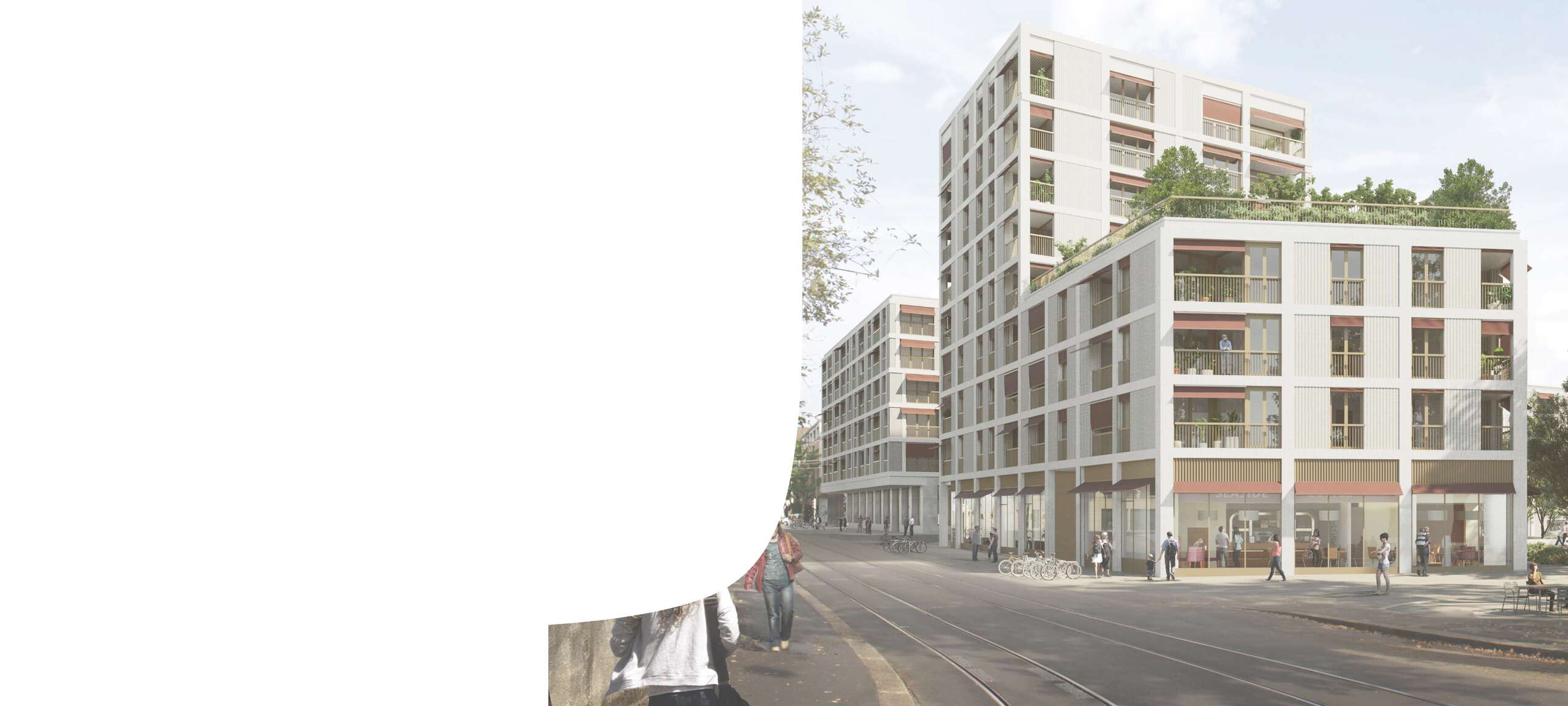 Das Herzstück des Projekts bildet ein neues Quartierzentrum entlang der Brunnmatt- und Schwarztorstrasse. Hier entstehen Dienstleistungsflächen und Geschäfte mit rund 2000 m2 und verschiedene Wohnungstypen, die eine lebendige und vielfältige Nachbarschaft fördern.